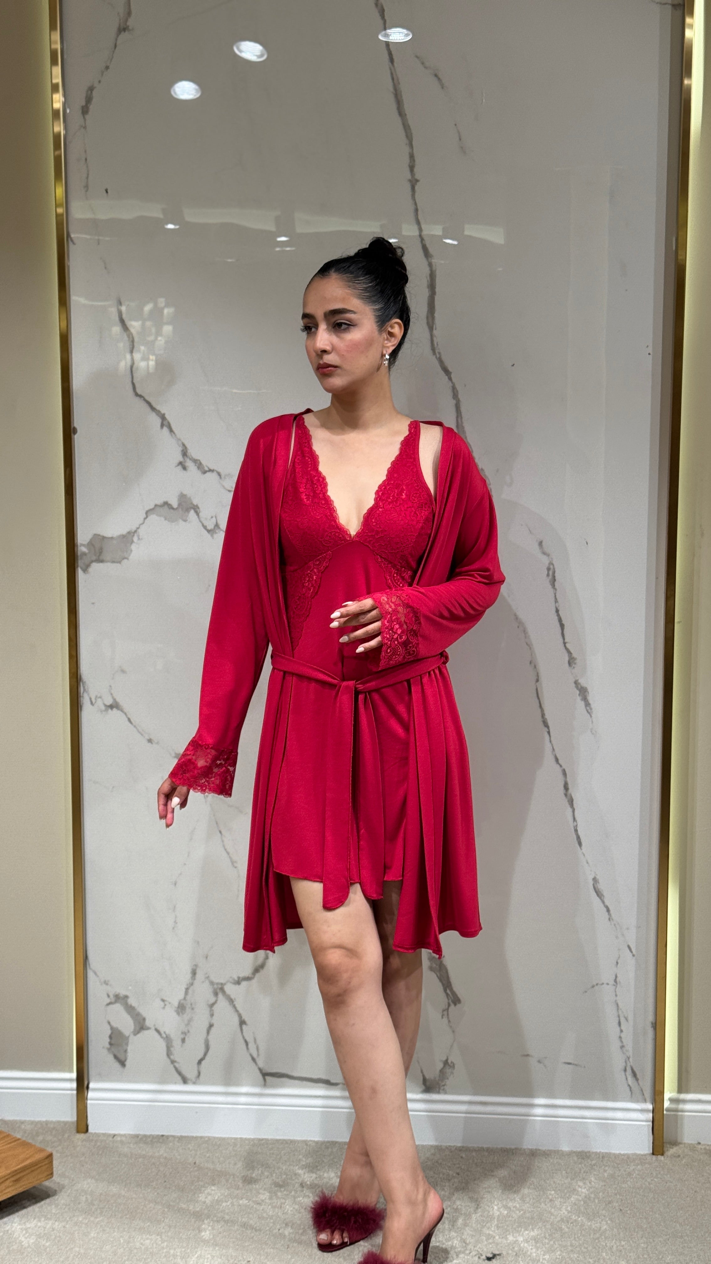 • Dantel kollu sabahlık