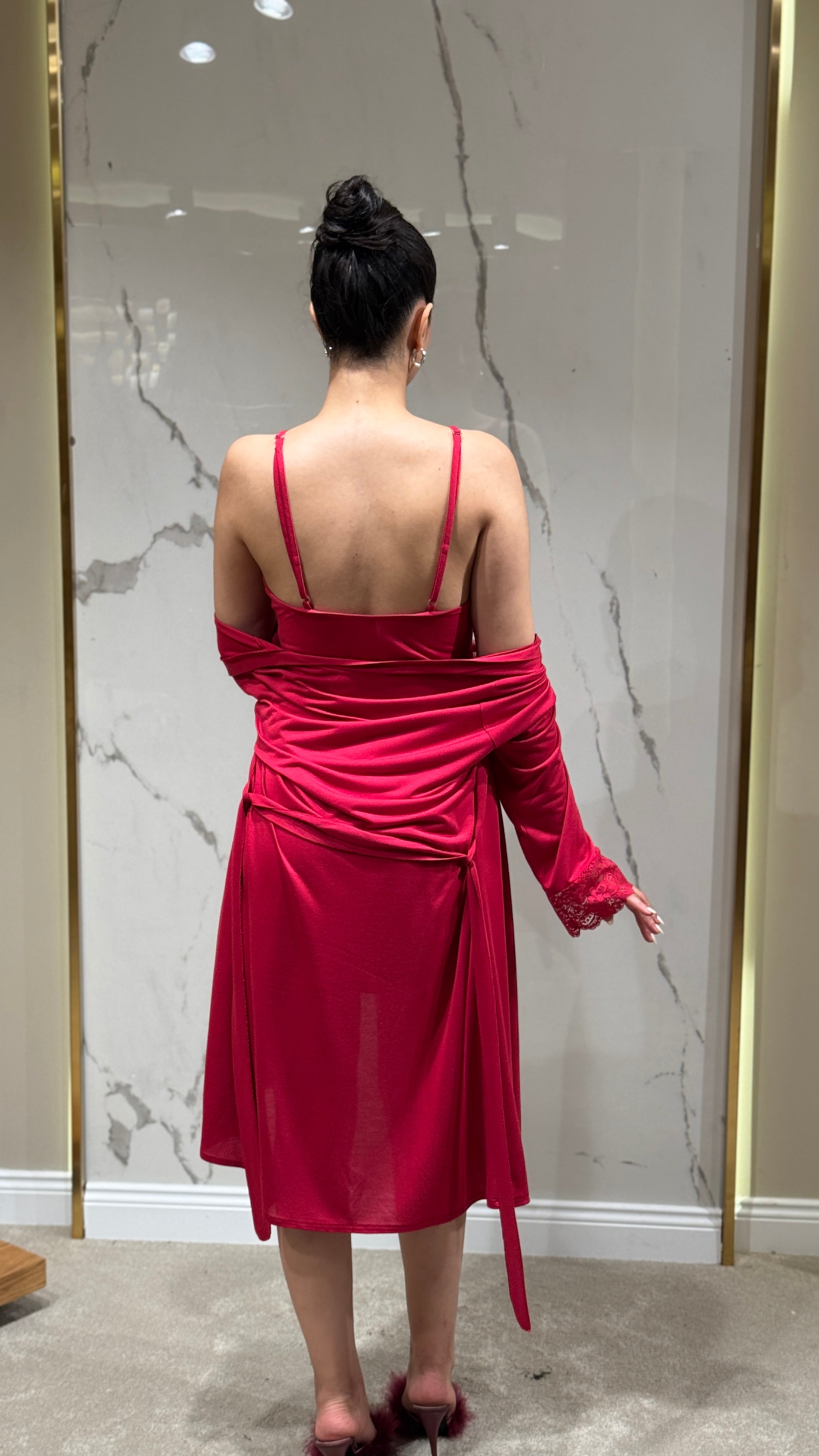 Özel günlerinizin vazgeçilmezi olan bu zarif sabahlık seti, sofistike tasarımı ve premium kumaşıyla dikkat çekiyor.