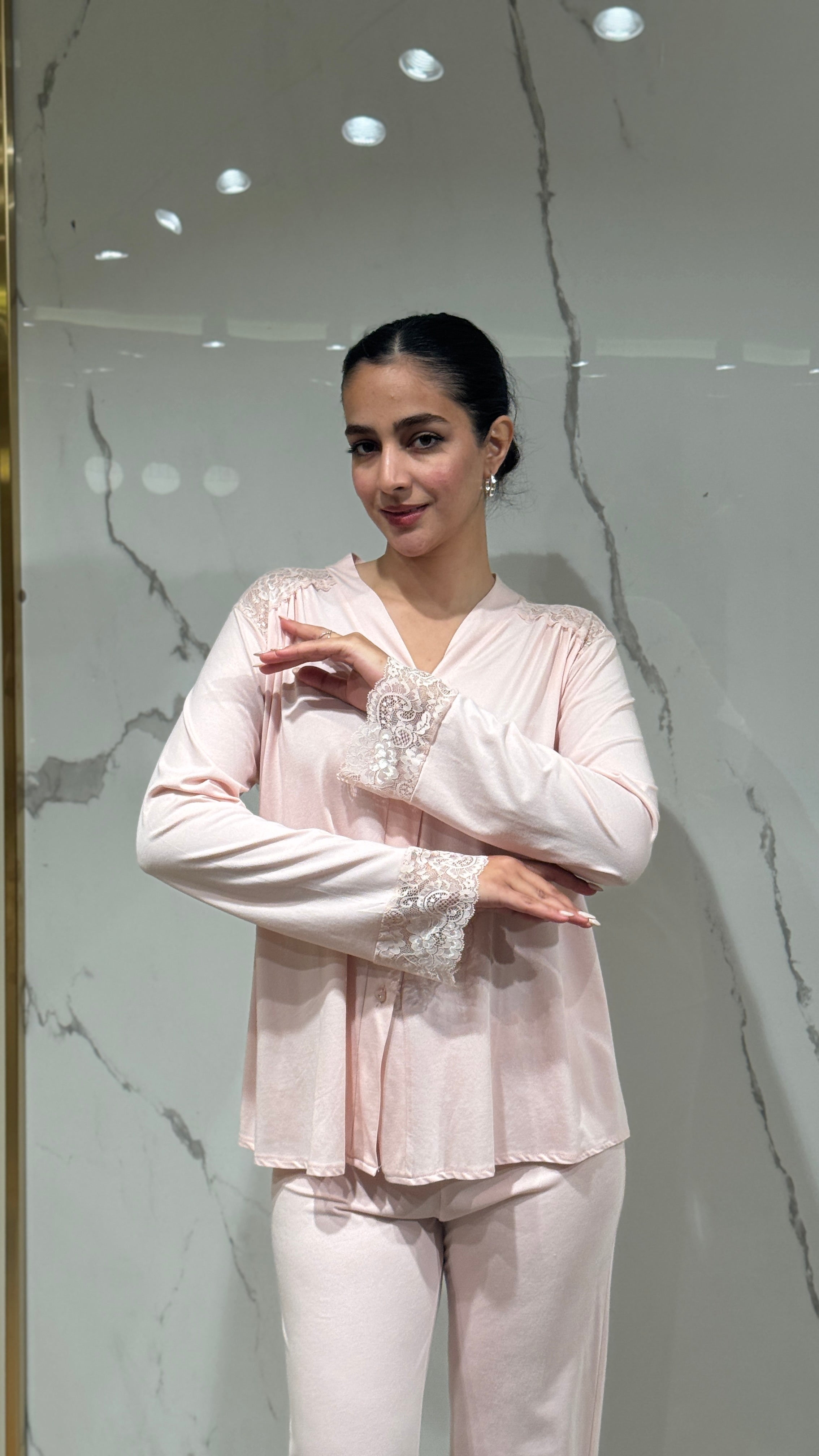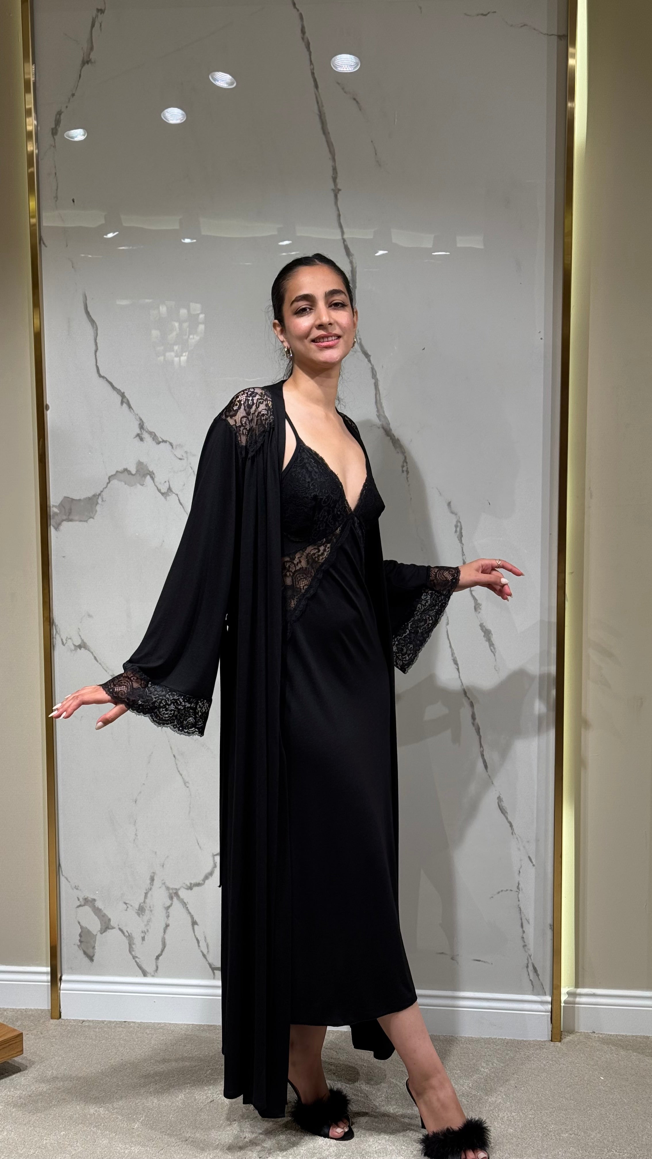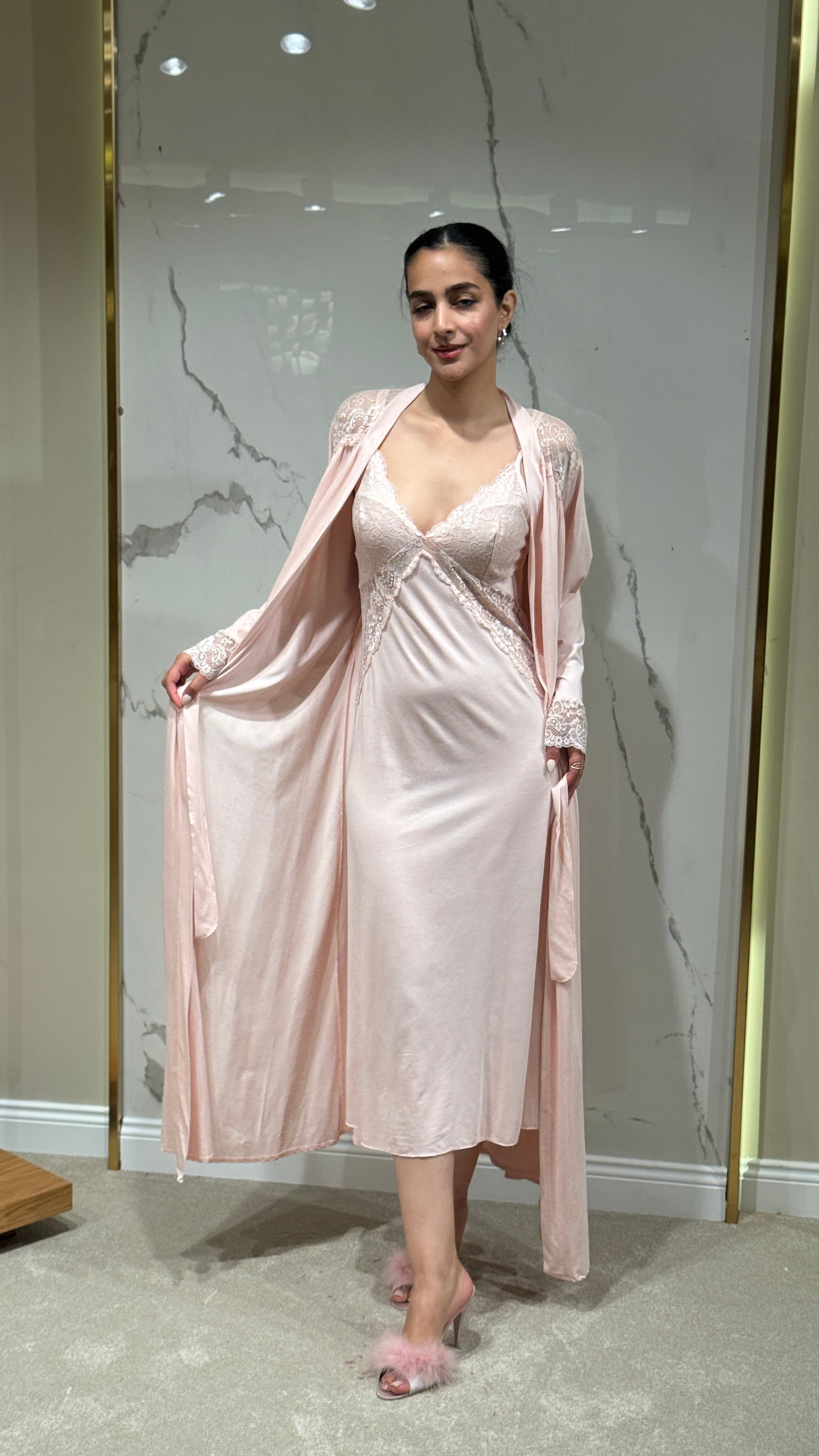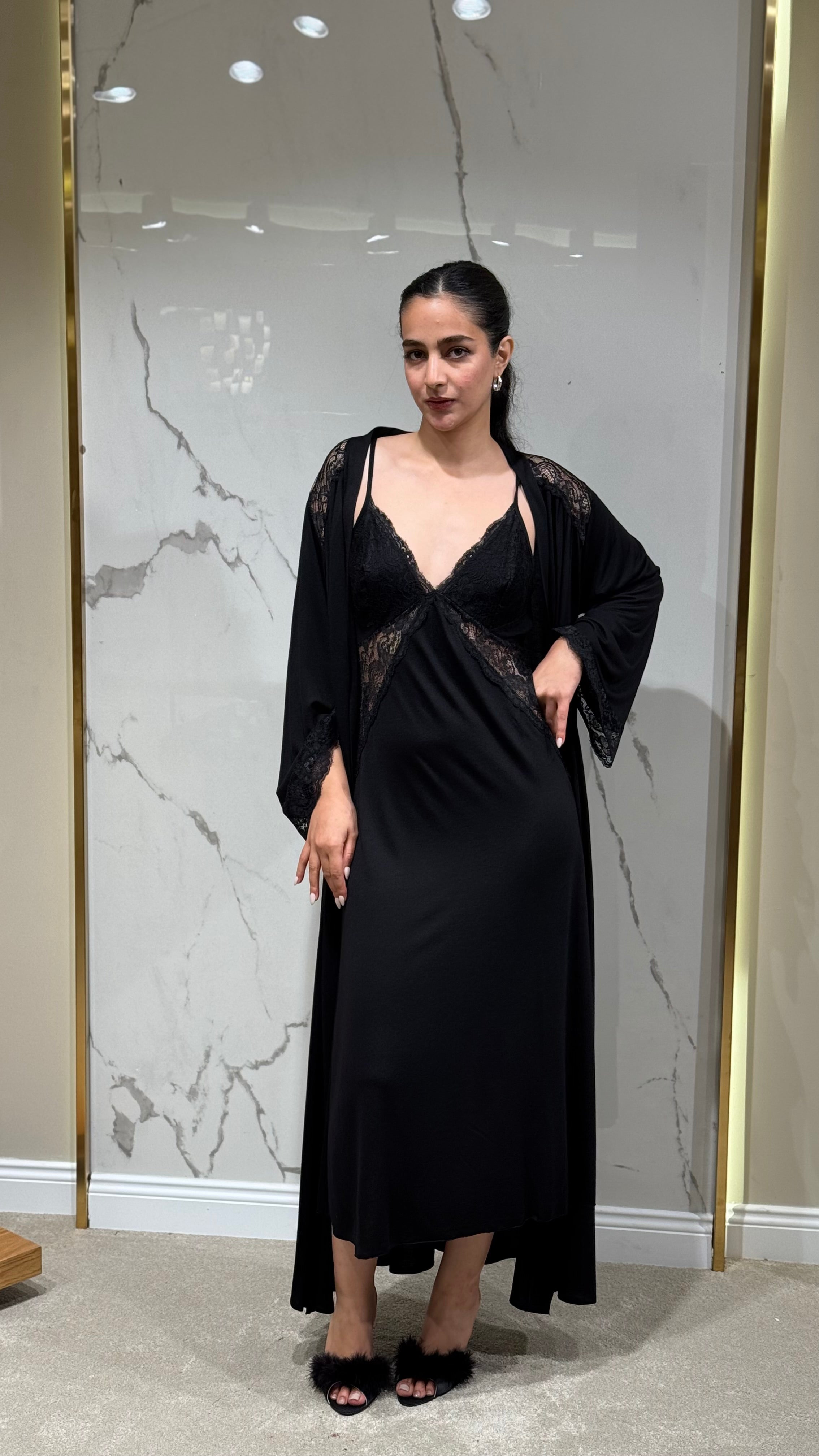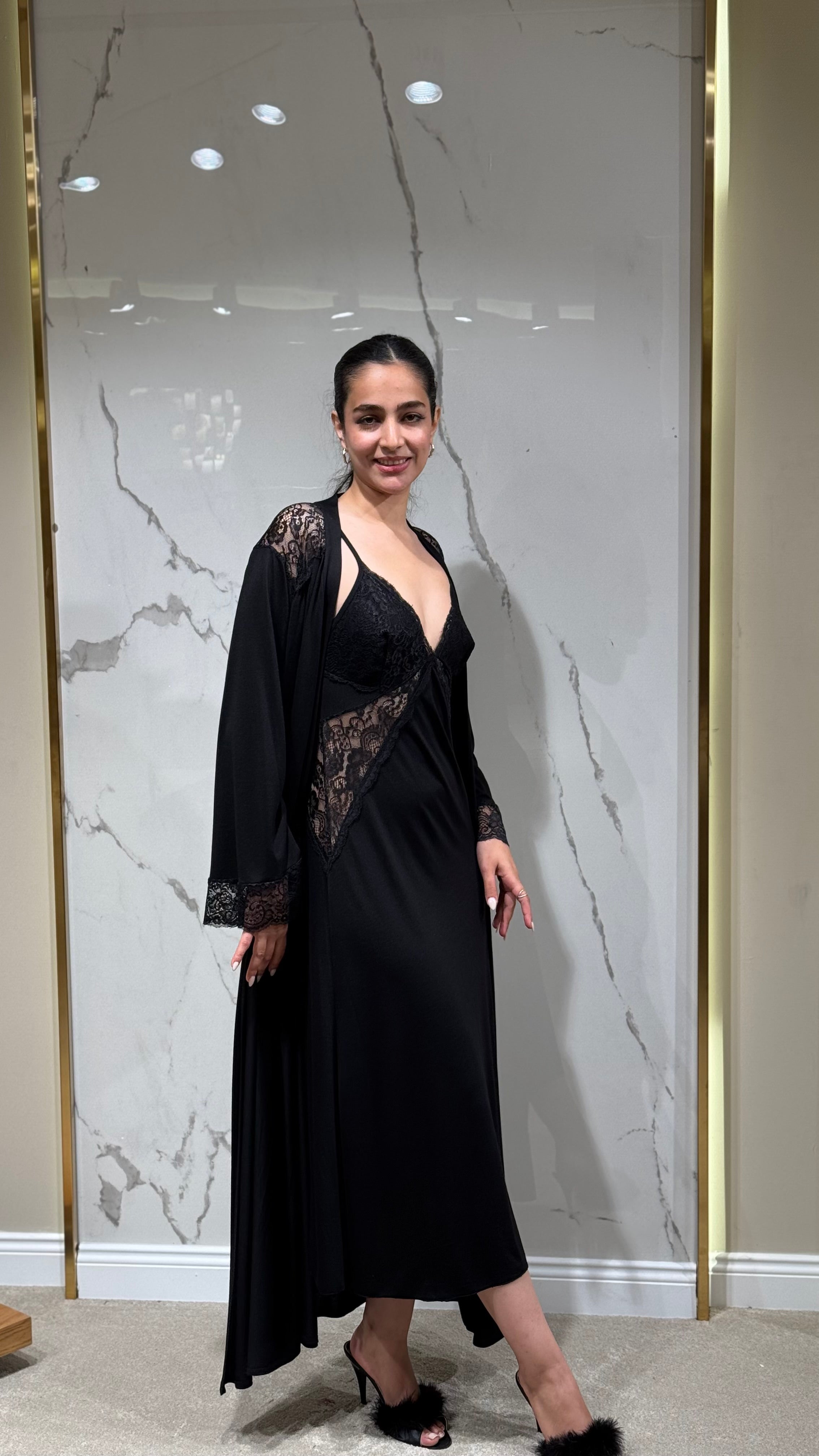 • Dantel kollu sabahlık