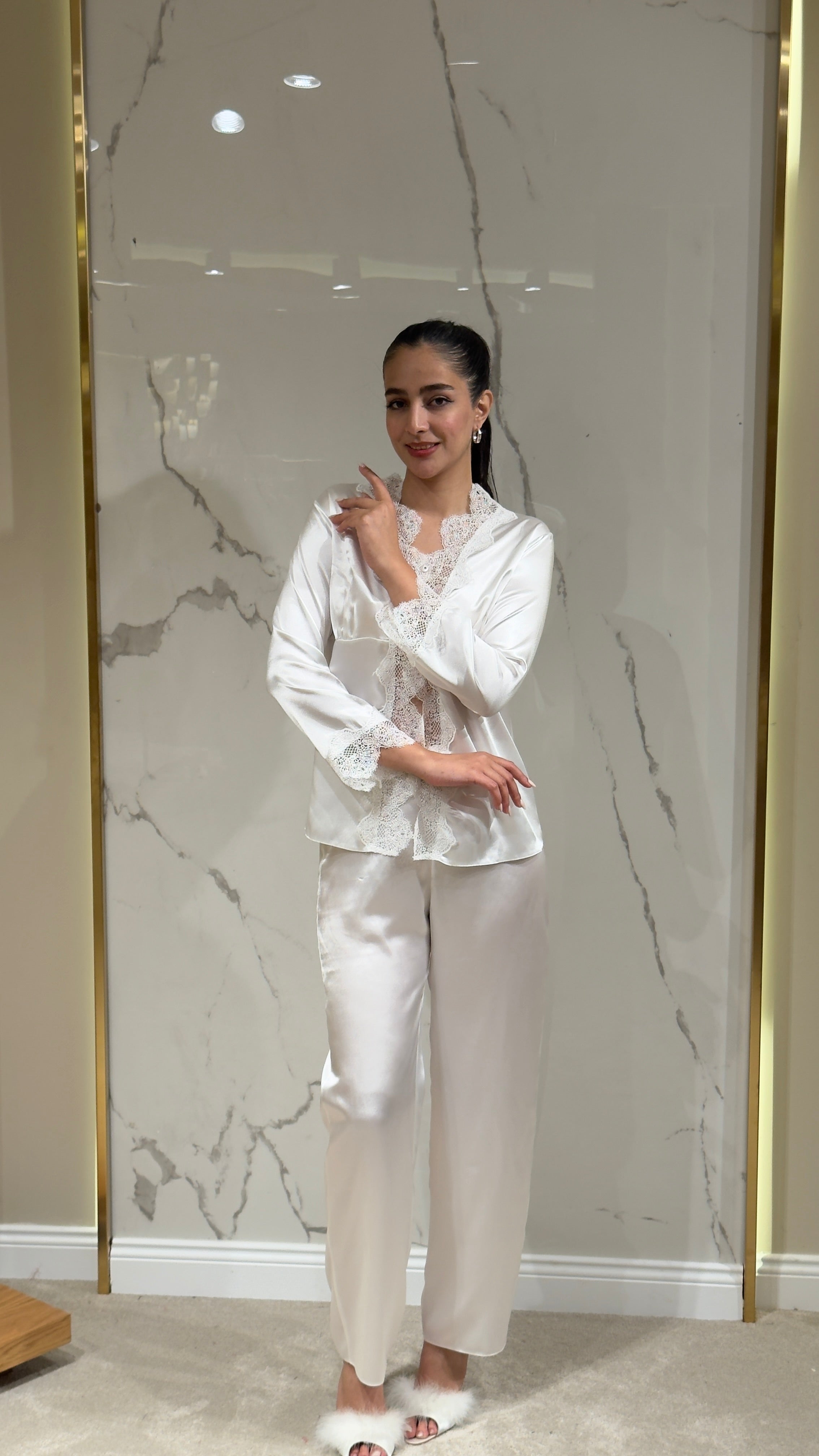 Saten Sabahlık Dantelli - 6'lı Set Takım